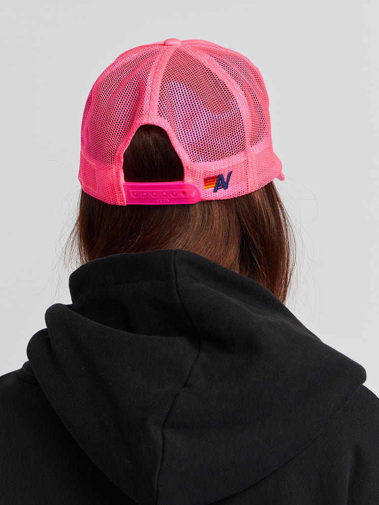 This Aviator Nation trucker hat with an adjustable snap back is the perfect finishing touch to your favorite outfits. Features a cherry patch on the center front and "SOULCYCLE" in red.