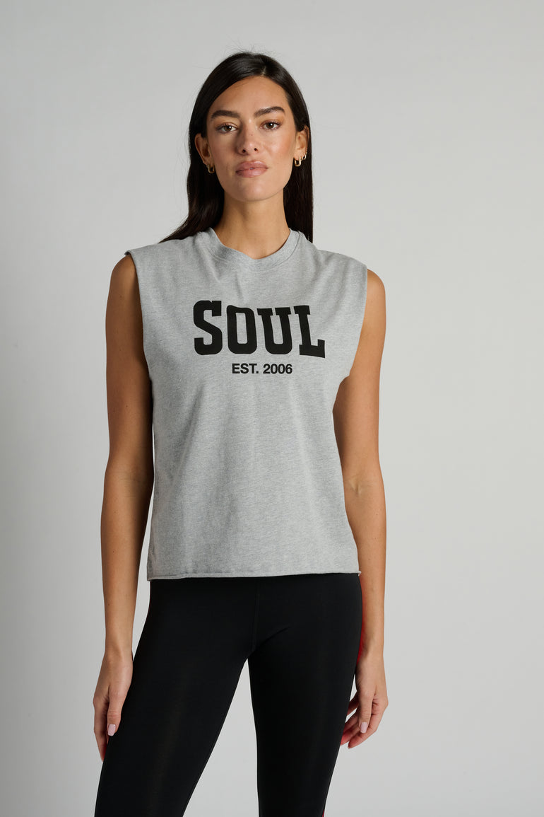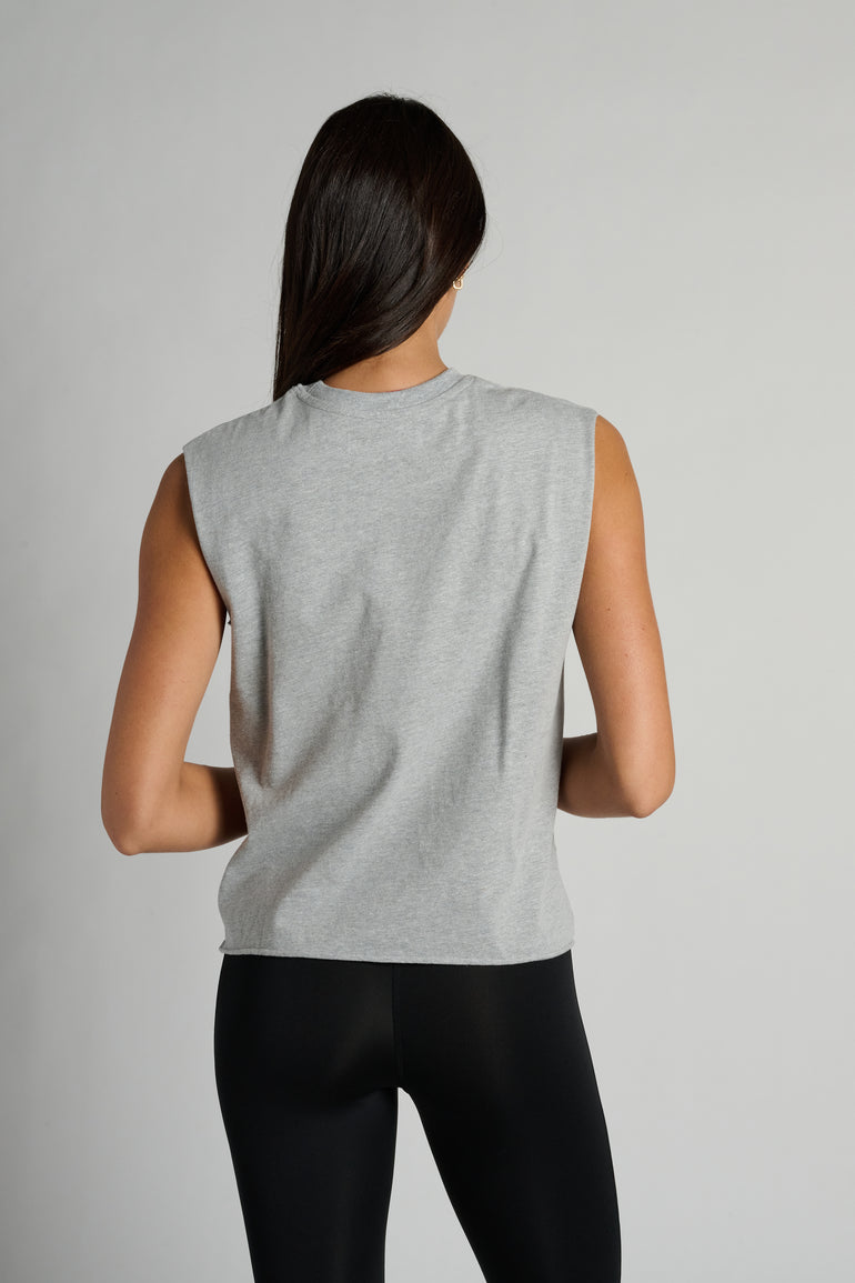 This effortlessly cool, laidback muscle tank is your go to top for hot summer days. Crafted from soft cotton, it features a boxy silhouette that drapes just right for a relaxed, unstructured fit. Featuring an unfinished hem and subtle neckline distressing, this tank adds a touch of worn-in edge while delivering carefree comfort.