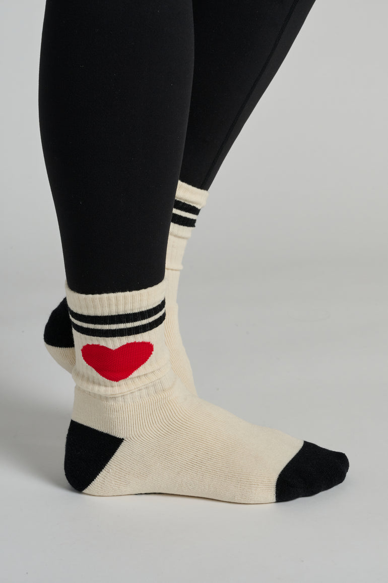The Be Love Crew Sock combines a soft, breathable cotton blend with sporty stripes, a heart graphic, and on-trend crew length for all-day comfort.