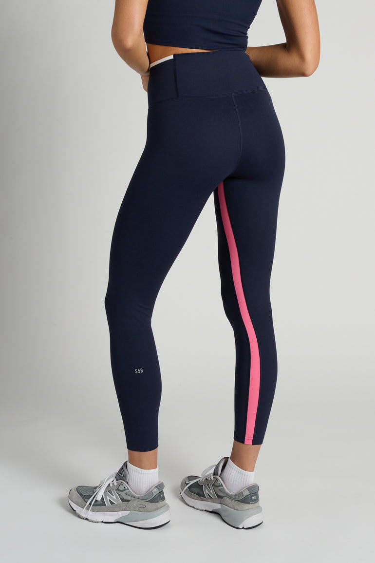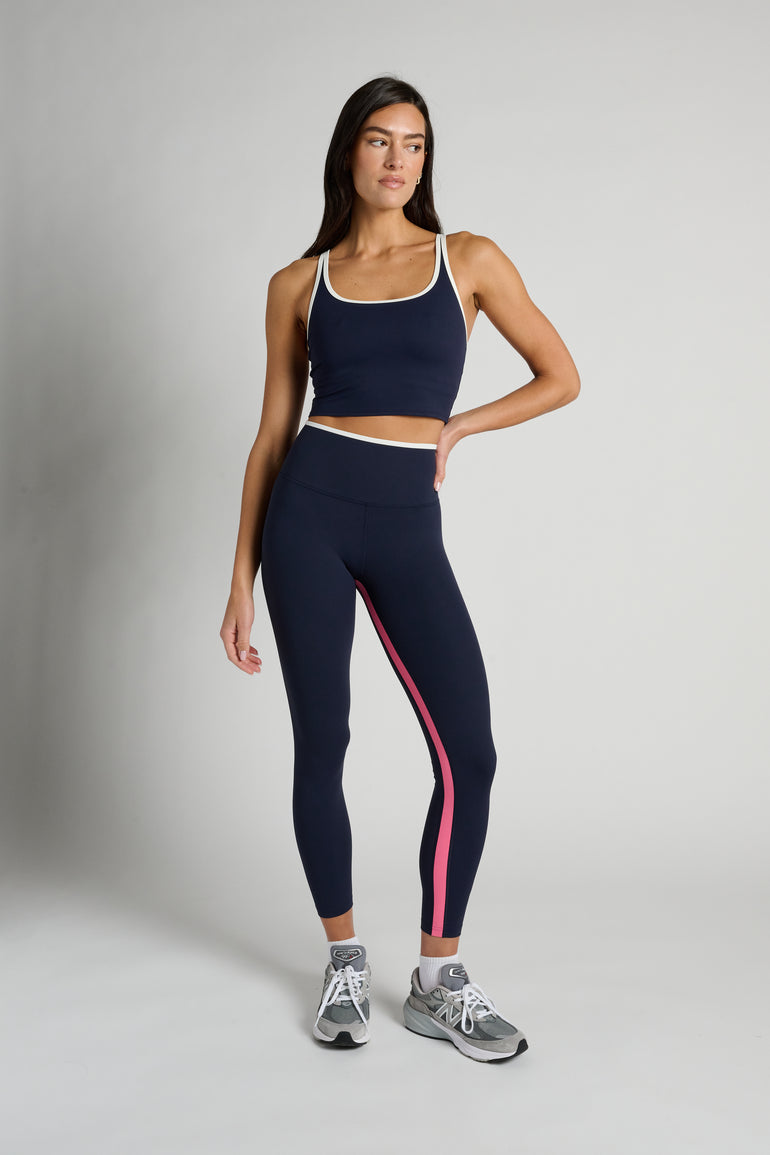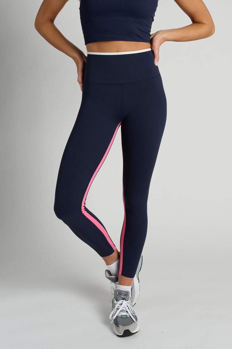 Pops of color along the waist deliver a flattering look while you move. Gently compressive Rigor fabric and high waist for support and shaping.