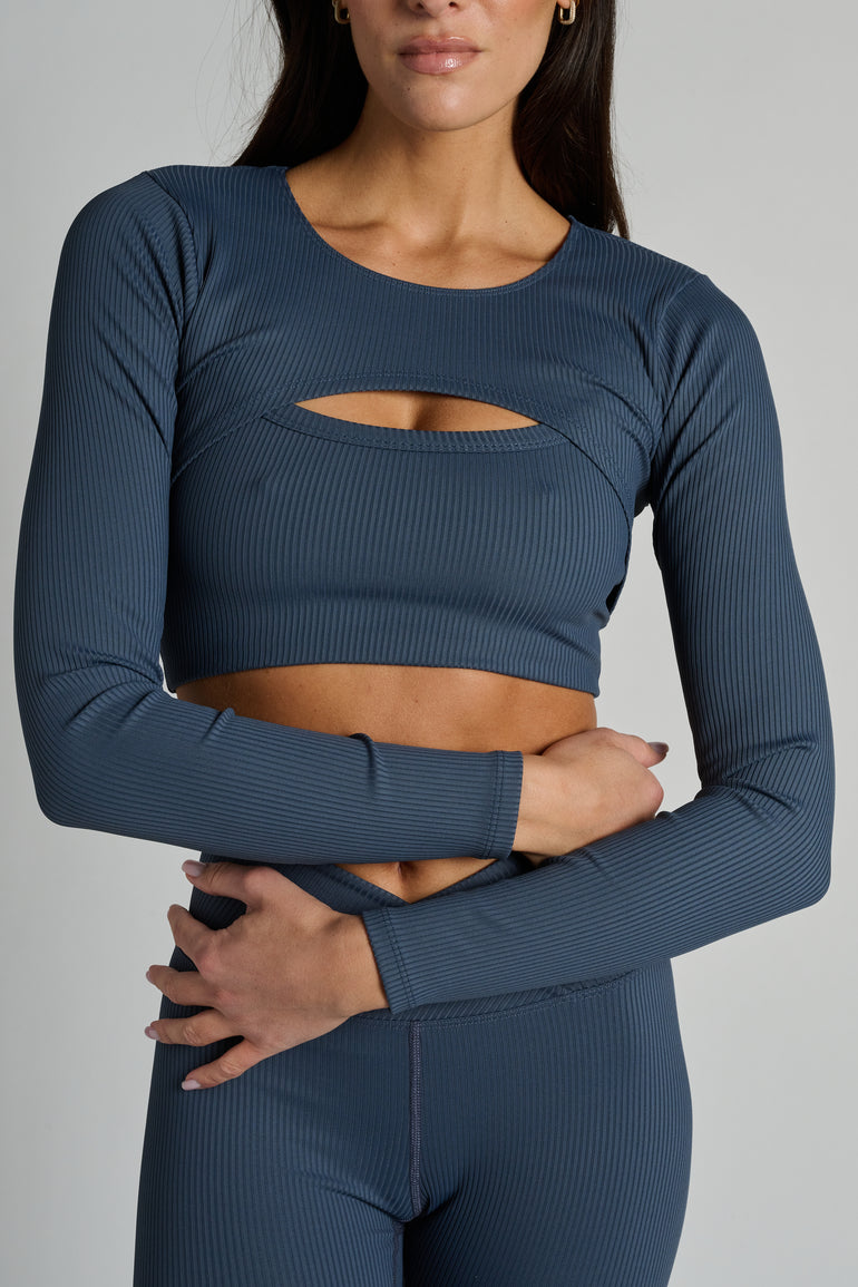 The perfect piece to turn your bra and leggings into a cold-weather ready workout fit. The Ribbed Active Shrug gives a little something extra to your next workout fit.