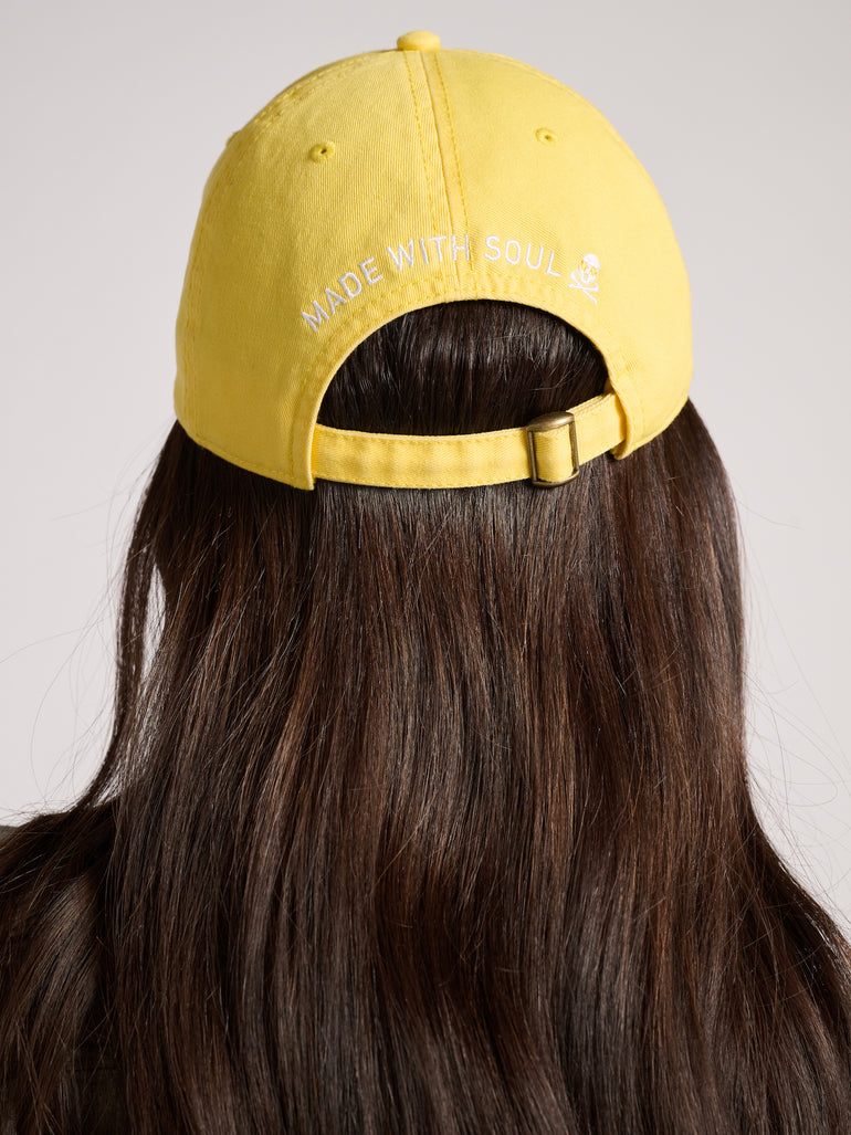 A simple baseball hat embroidered with Kerri's iconic hand stitched loved and imperfect heart in white with SoulCycle hit on the back. The perfect cap to top off any look.