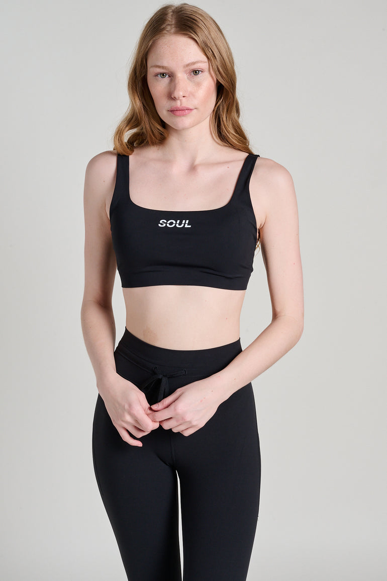 A modern take on a classic sports bra, featuring a flattering square neckline and a streamlined, minimal silhouette. Designed with soft, stretchy fabric for a comfortable, second-skin feel, it offers light support for low-impact activities.
