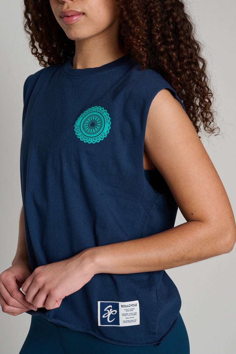This effortlessly cool, laidback muscle tank is your go to top for hot summer days. Crafted from soft cotton, it features a boxy silhouette that drapes just right for a relaxed, unstructured fit. Featuring an unfinished hem and subtle neckline distressing, this tank adds a touch of worn-in edge while delivering carefree comfort.
