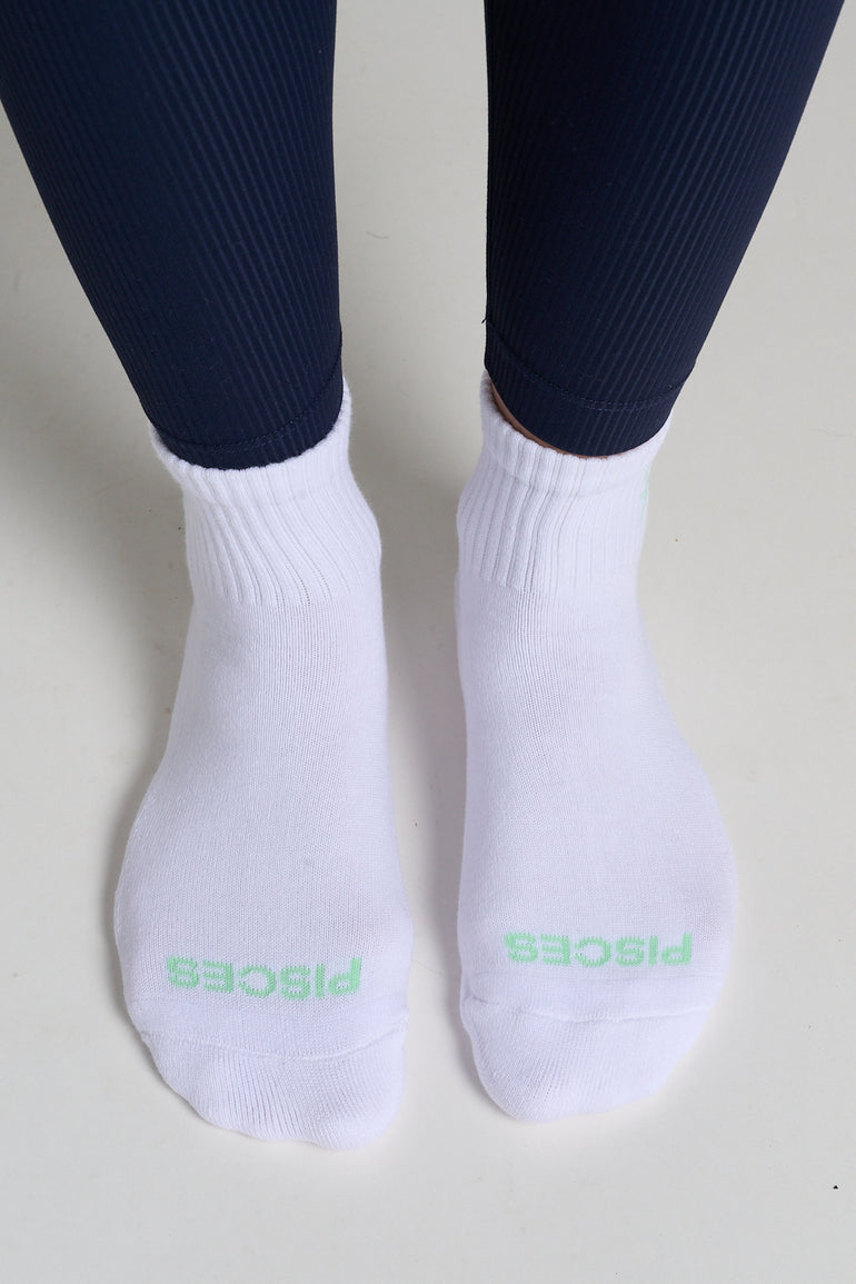 A clean, minimalist essential with subtle Pisces detailing. Designed with a supportive quarter-cut height and a soft, breathable knit for comfortable everyday wear.