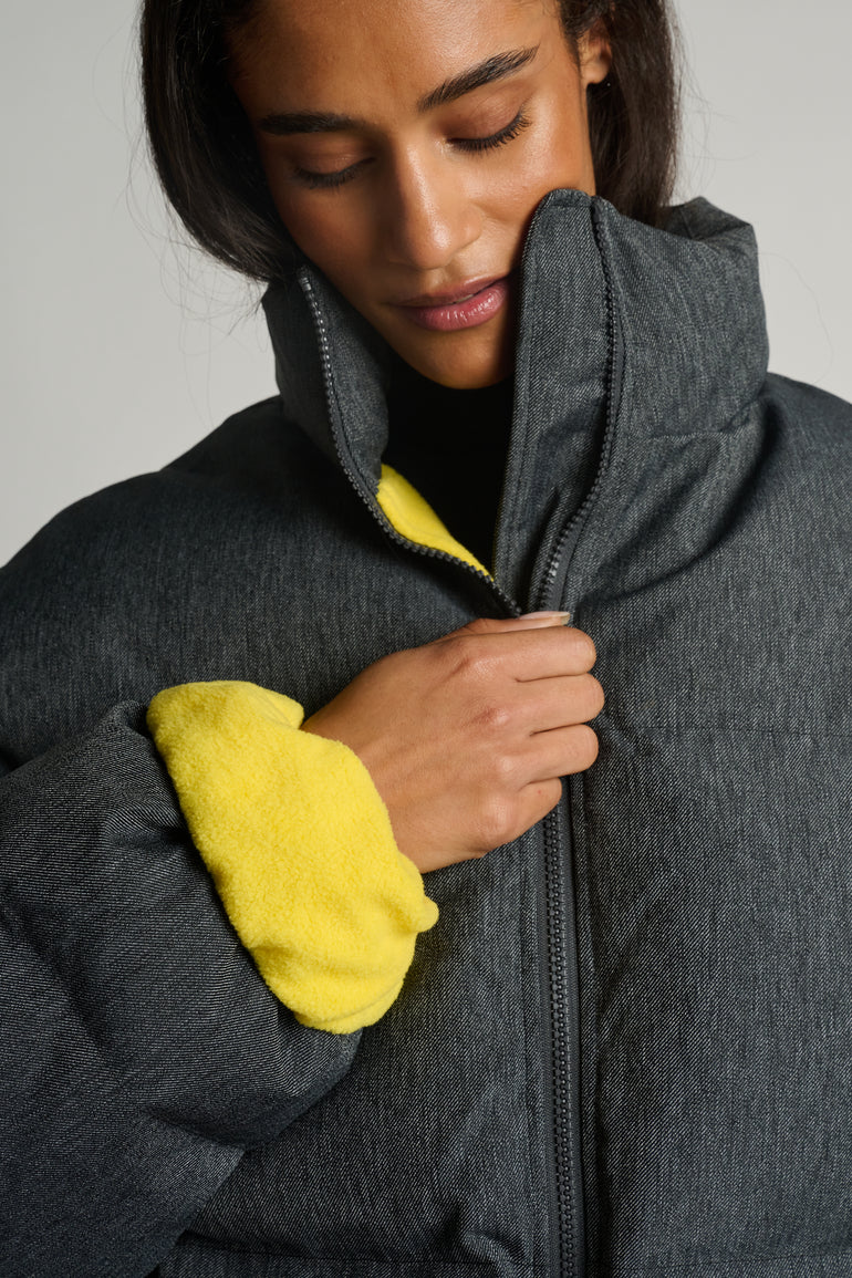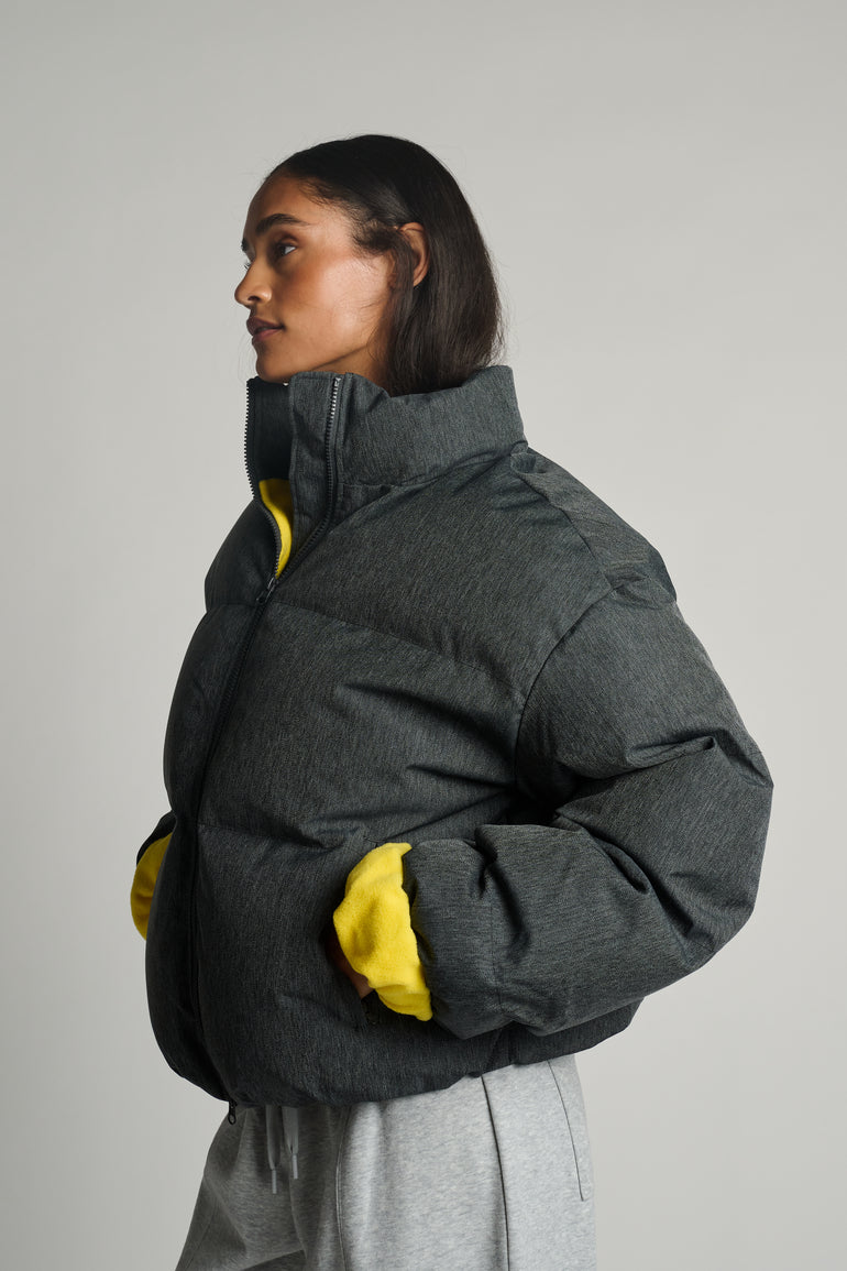 The Puffer Coat is this season’s standout piece where fashion meets function. Made from deadstock materials, it features a waterproof nylon shell and cozy polar fleece lining to keep you warm all winter long. Designed with a boxy, cropped fit, elasticated cuffs and hem, and plenty of pockets inside and out. Oversized for that effortless, relaxed vibe.