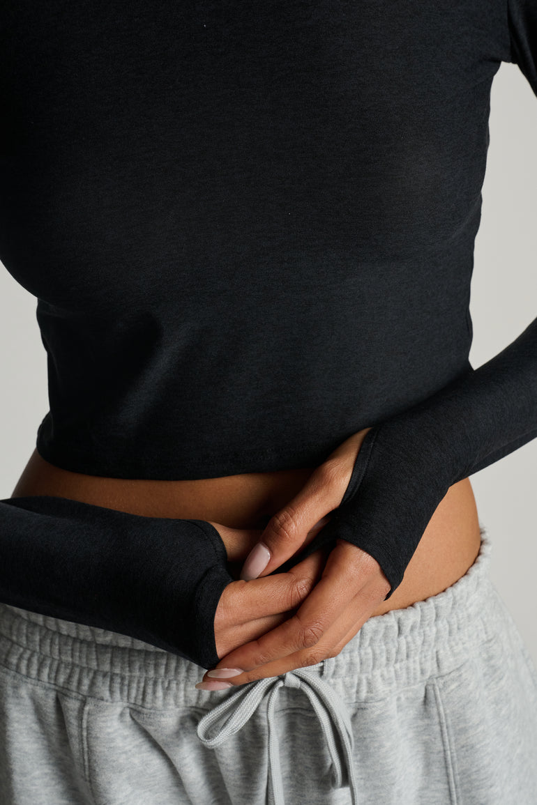 The Featherweight Moving Cropped Turtleneck is a mock turtleneck, thumbholes, a fitted silhouette, and a cropped length. Wear it as your first buttery-soft layer under sweaters or on its own for a cute, seasonally appropriate look.