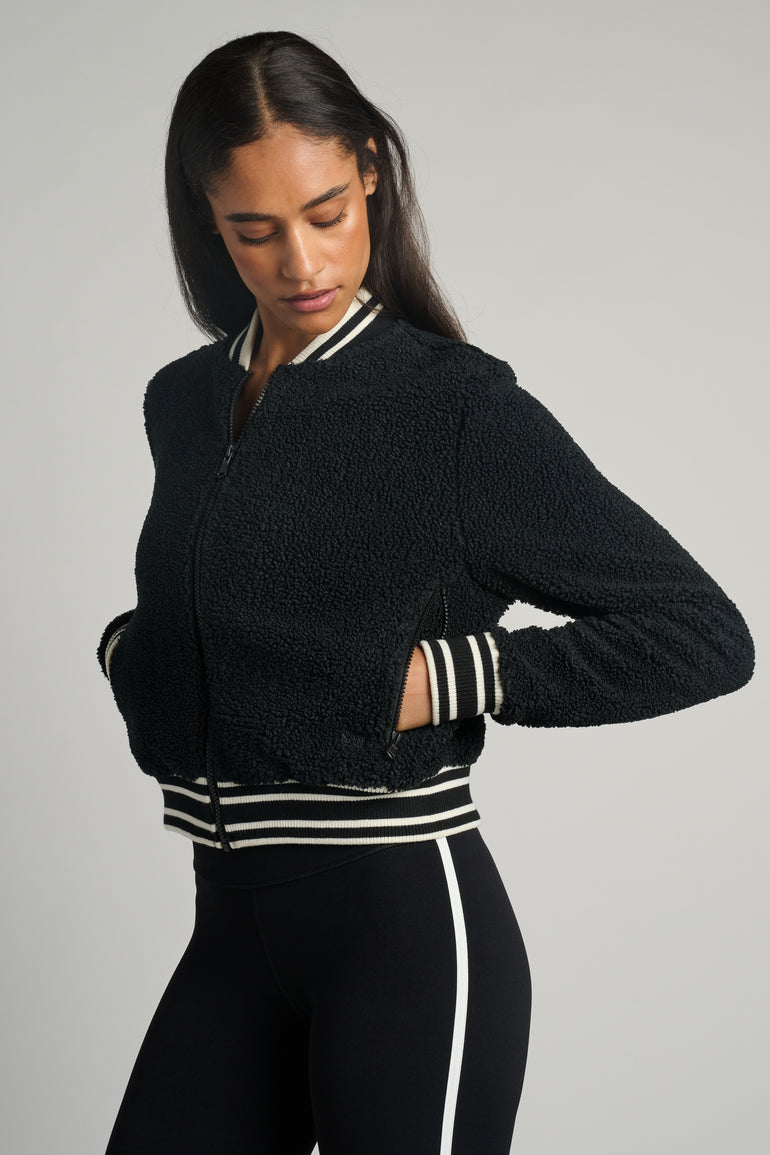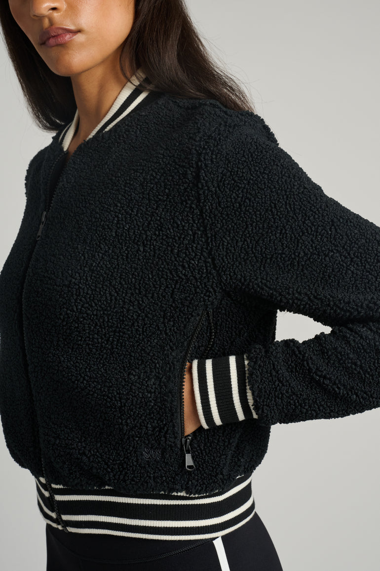 This cozy baseball-style Sherpa is the ultimate layer for cold-weather days. Perfect for winter workouts, cheering from the stands for your favorite sports team, or hitting the slopes, it combines warmth and style effortlessly. Soft, plush, and designed for all-day comfort, this Sherpa is a versatile addition to your seasonal wardrobe.