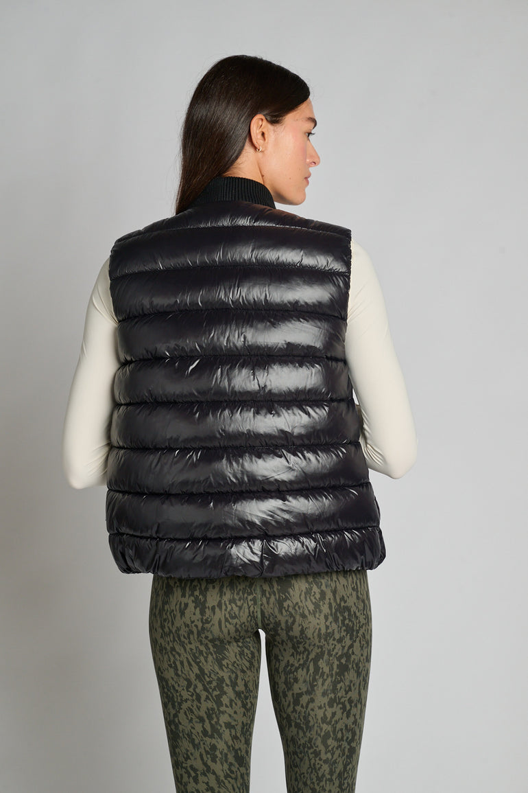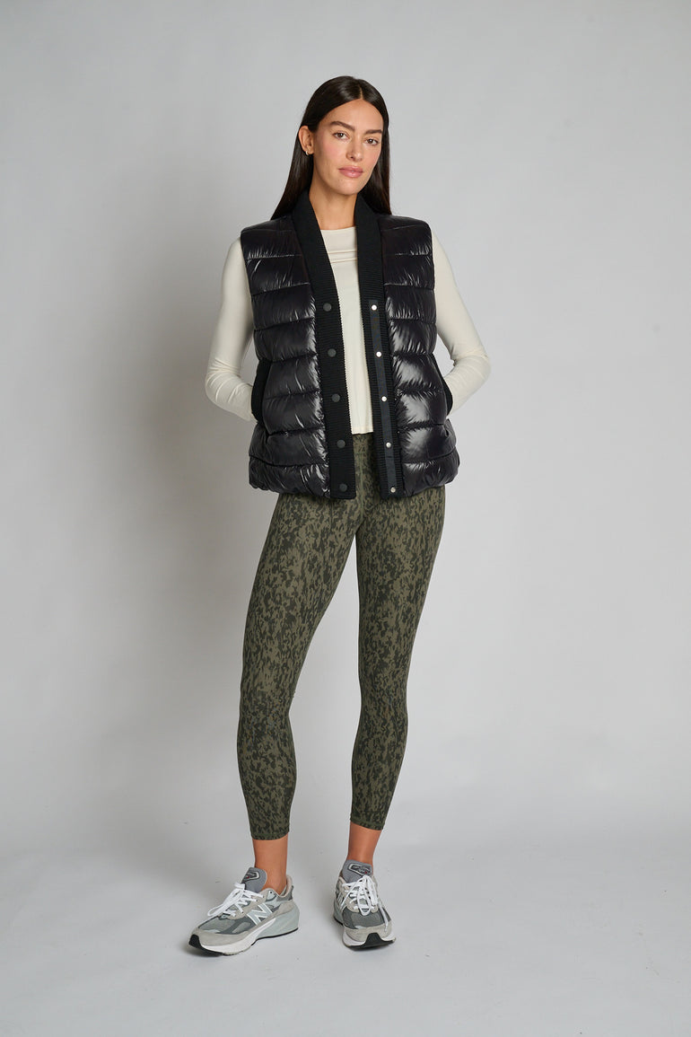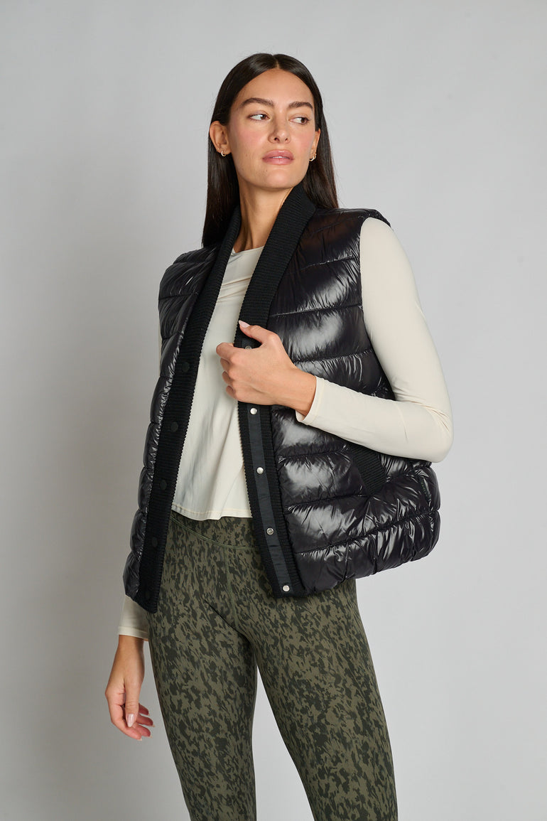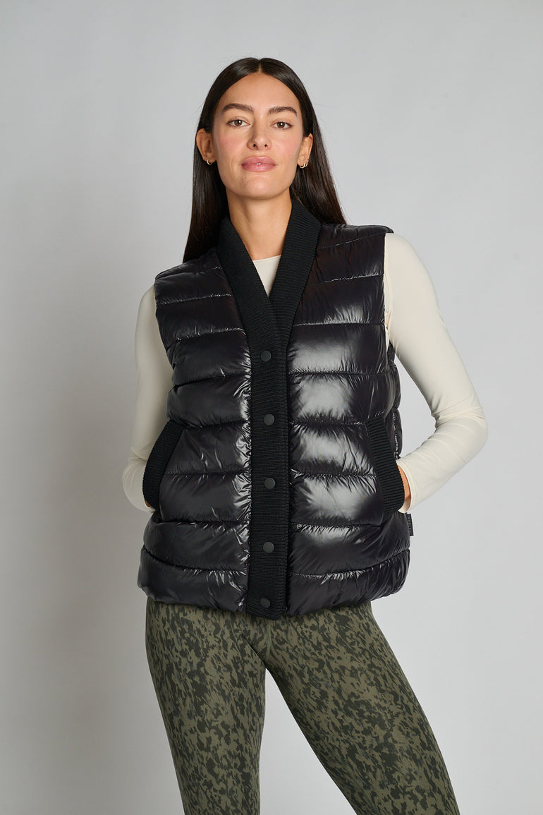 Featuring a relaxed fit and lightweight, quilted nylon for insulation, this gilet combines practicality with modern design. The knitted placket and trims add a unique touch, while the snap fastening makes it perfect for easy layering.