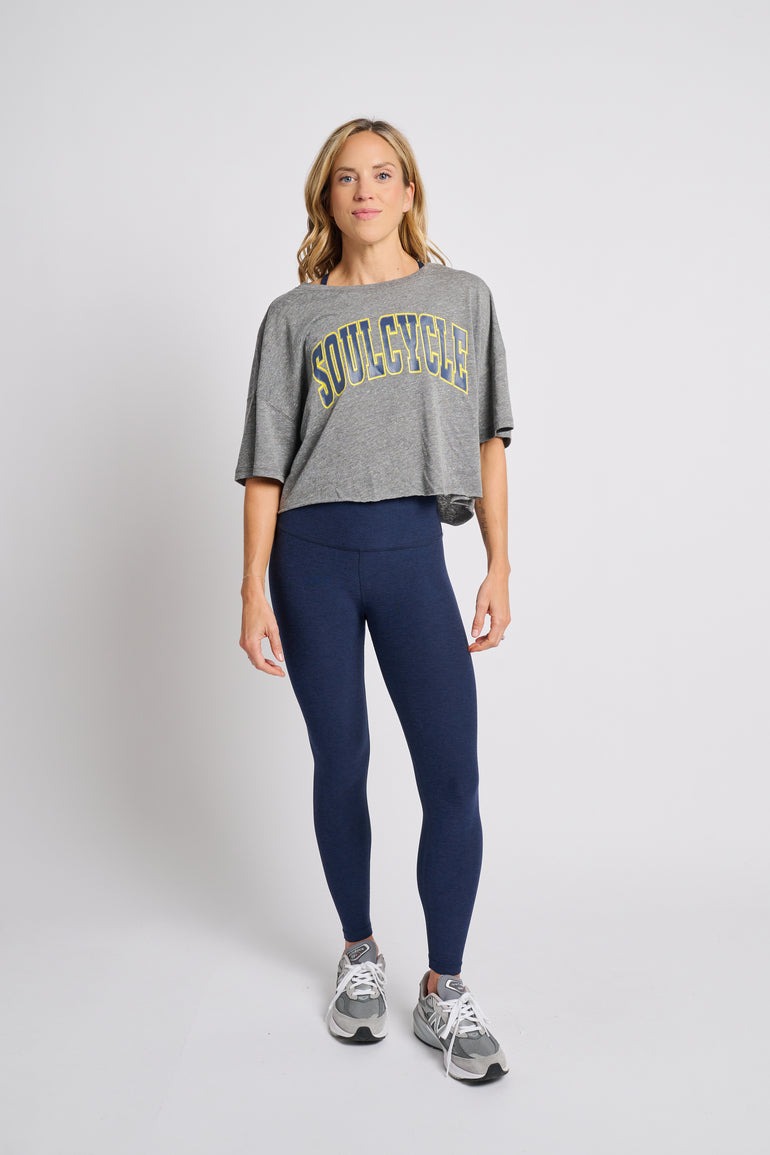 The Cropped Varsity Tee is a relaxed, boxy fit with a raw hem and bold SOULCYCLE graphic across the chest. Lightweight and easy to style, it’s your go-to for throwing on before or after class.
