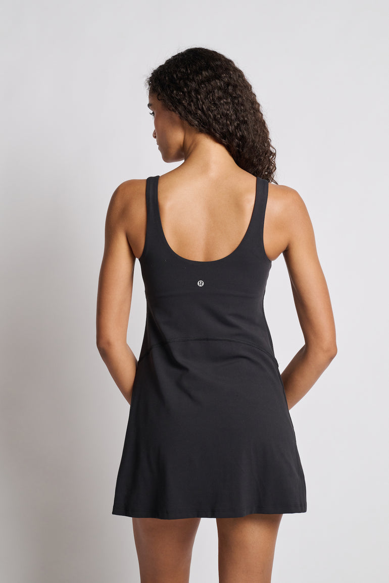 The Align™ Dress is made from buttery-soft, weightless fabric with four-way stretch, sweat-wicking, and breathable properties. Designed for medium-impact activities, it features a built-in shelf bra with optional, removable cups, a 4" shorts liner with side drop-in pockets, and an open-back waistband for easy bathroom breaks.