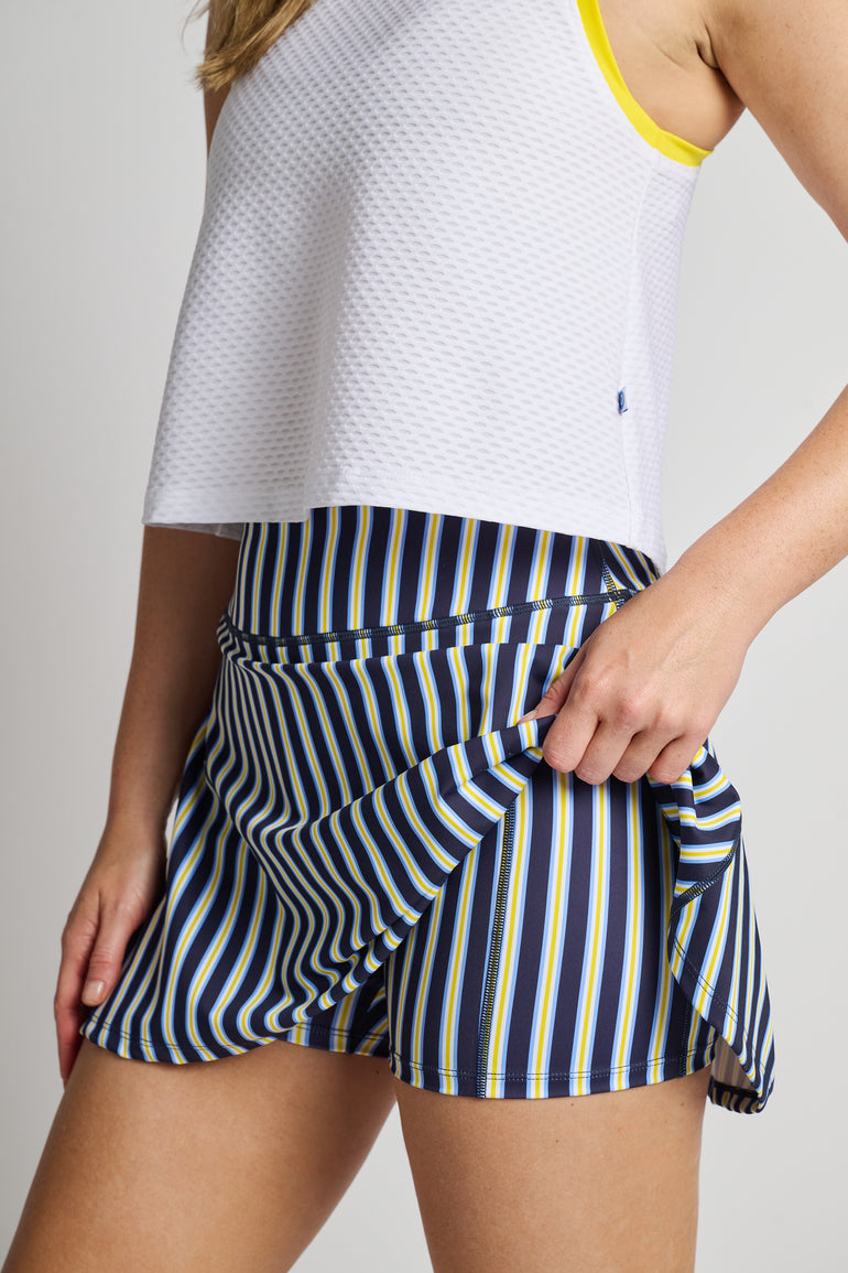 The Flounce Skort takes you from 7AM to 7PM with all-day comfort and style. Snug at the waist and flaring out for movement, it features built-in undershorts with a convenient pocket for essentials.