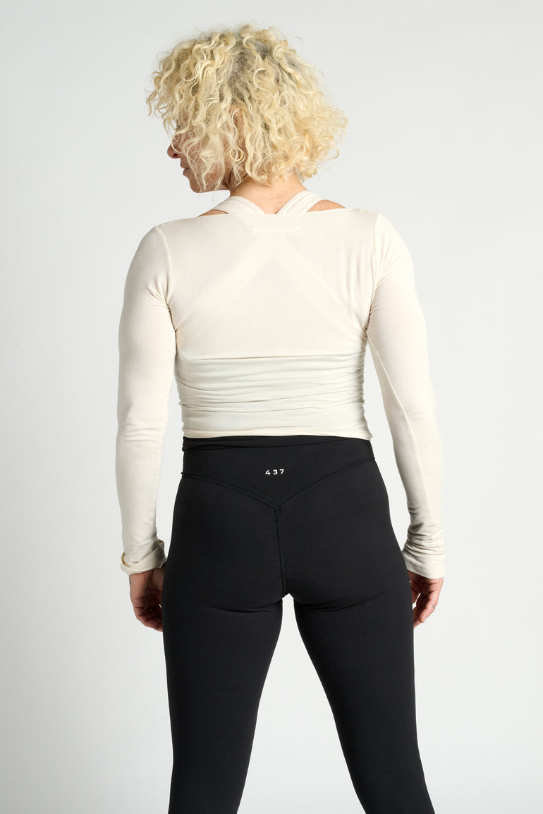 The Ballet Wrap brings timeless femininity to everyday movement. Crafted from lightweight, cooling modal with a touch of stretch, it’s designed for effortless movement with a crossover neckline, self-tie waist, and full-length sleeves finished with subtle 437 embroidery at the wrist. Perfect for layering over activewear or styling beyond the studio, this wrap offers a soft, breathable drape that flatters every silhouette.