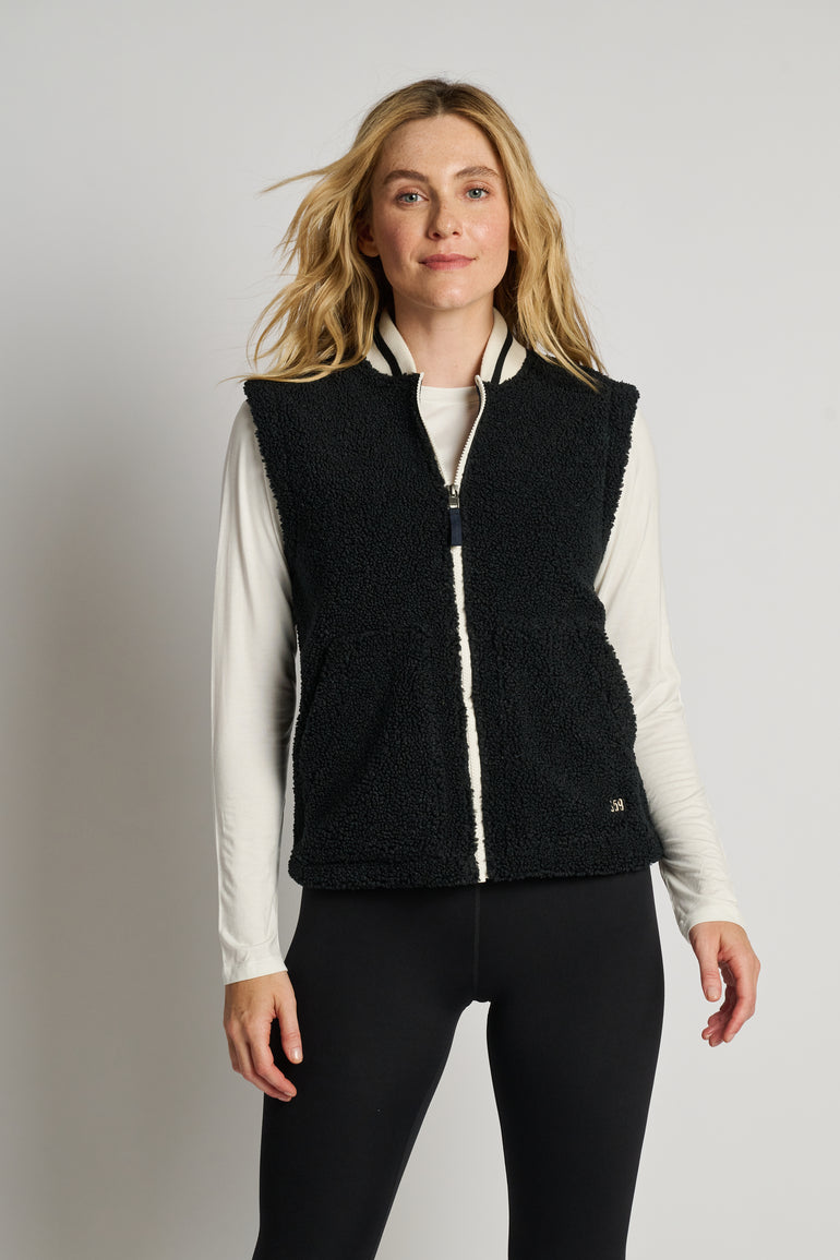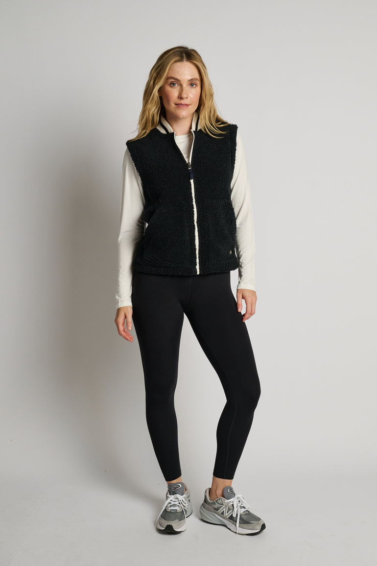 The full zip Aster Sherpa Vest is a luxe, warm outer layer for your wardrobe. Perfect for chilly morning workouts or coffee runs.