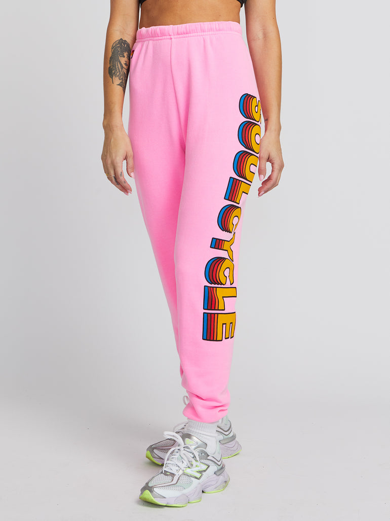 Made to live in. These vintage-inspired sweatpants by Aviator Nation goes through a special break-down process so it has that lived-in softness for the first wear. Hand sewn using single needle stitch work in the heart of Los Angeles. Features "SOULCYCLE" down right leg. Made in L.A.