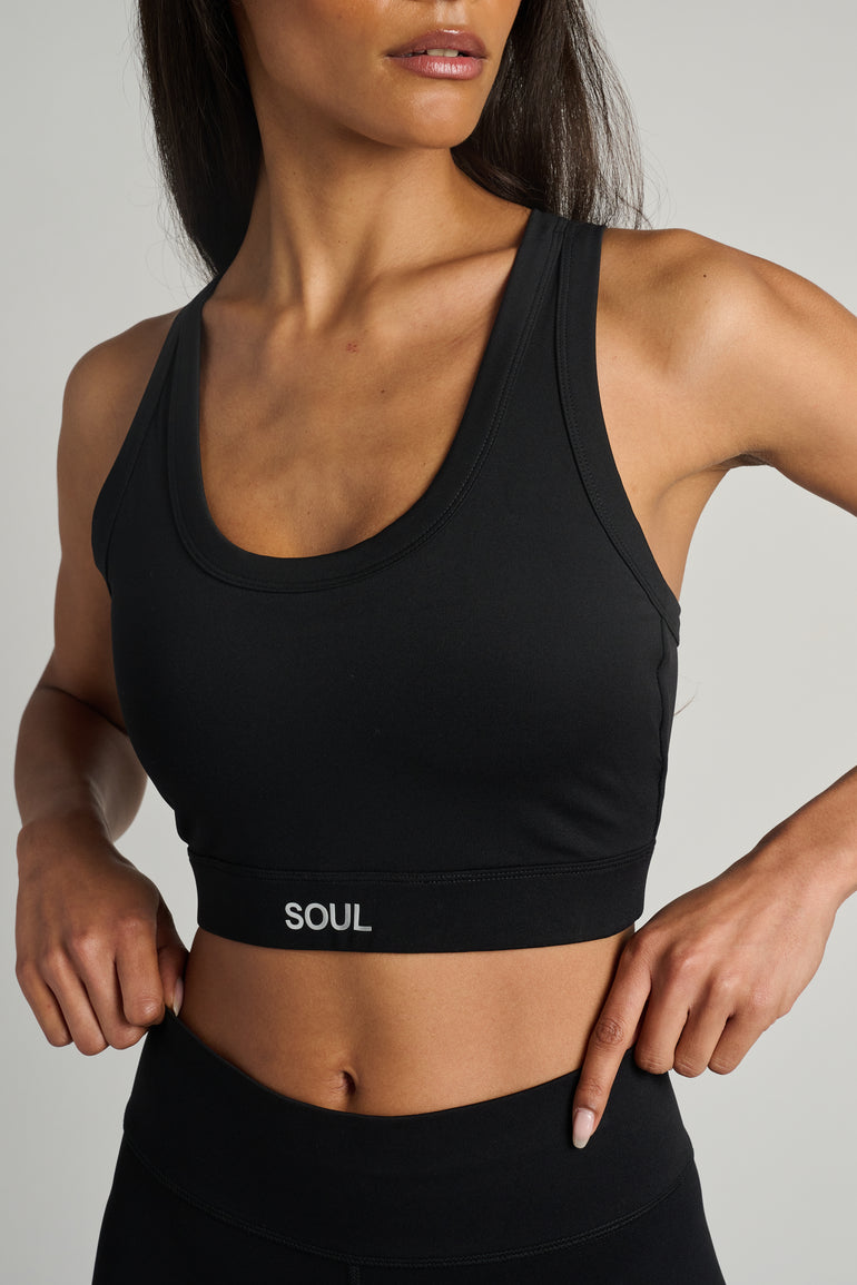 The Flex Bra delivers smooth, sculpting support with a sleek scoop neckline and a clean, minimalist silhouette. Made from soft, performance-driven fabric, it moves with you while staying breathable and secure. Finished with a clean SOUL logo for a subtle, elevated finish.