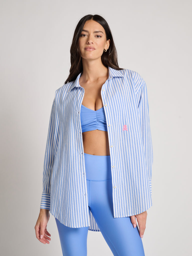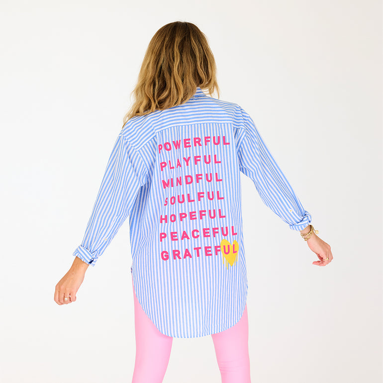 A relaxed-fit button-down shirt designed by Kerri Rosenthal, featuring SoulCycle’s signature mantras infused with heart, soul, and her iconic artistic touch.