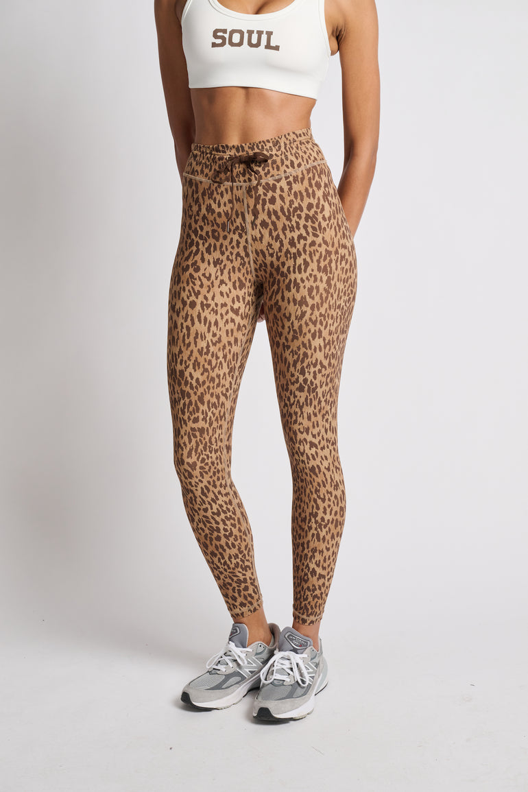 This mid-rise midi pant features a 25" leg length and is printed in the Panthera leopard print. Made from recycled, soft-peached fabric with a brushed handfeel, it’s moisture-wicking, breathable, quick-drying, and extra soft for all-day comfort.