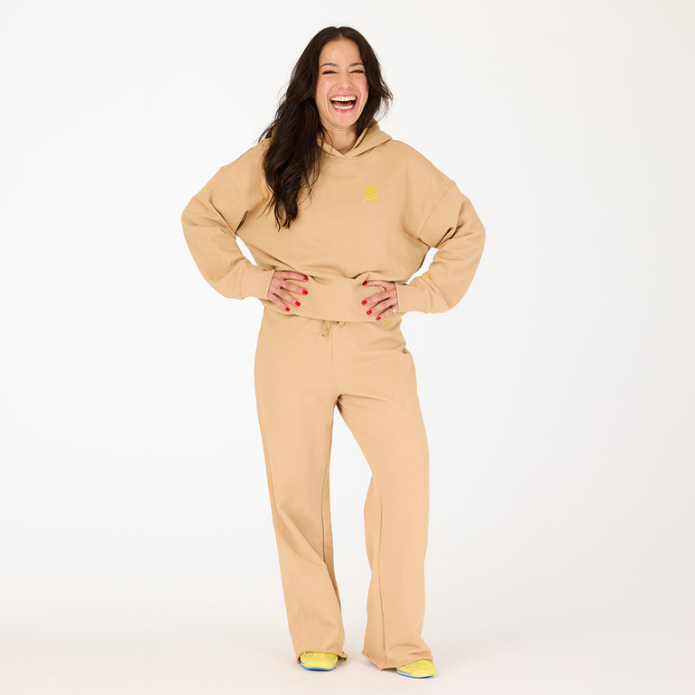 A relaxed straight-leg sweatpant and a comfortable drawstring waistband for an easy, laid-back fit.